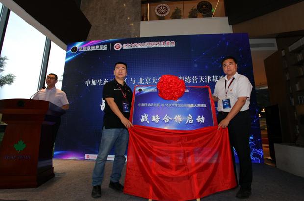 接下来,在中新天津生态城管委会领导及创业家们的共同见证下,钟松、袁航正式开启了“中加生态示范区与北京大学创业训练营天津基地战略合作”的启动仪式。