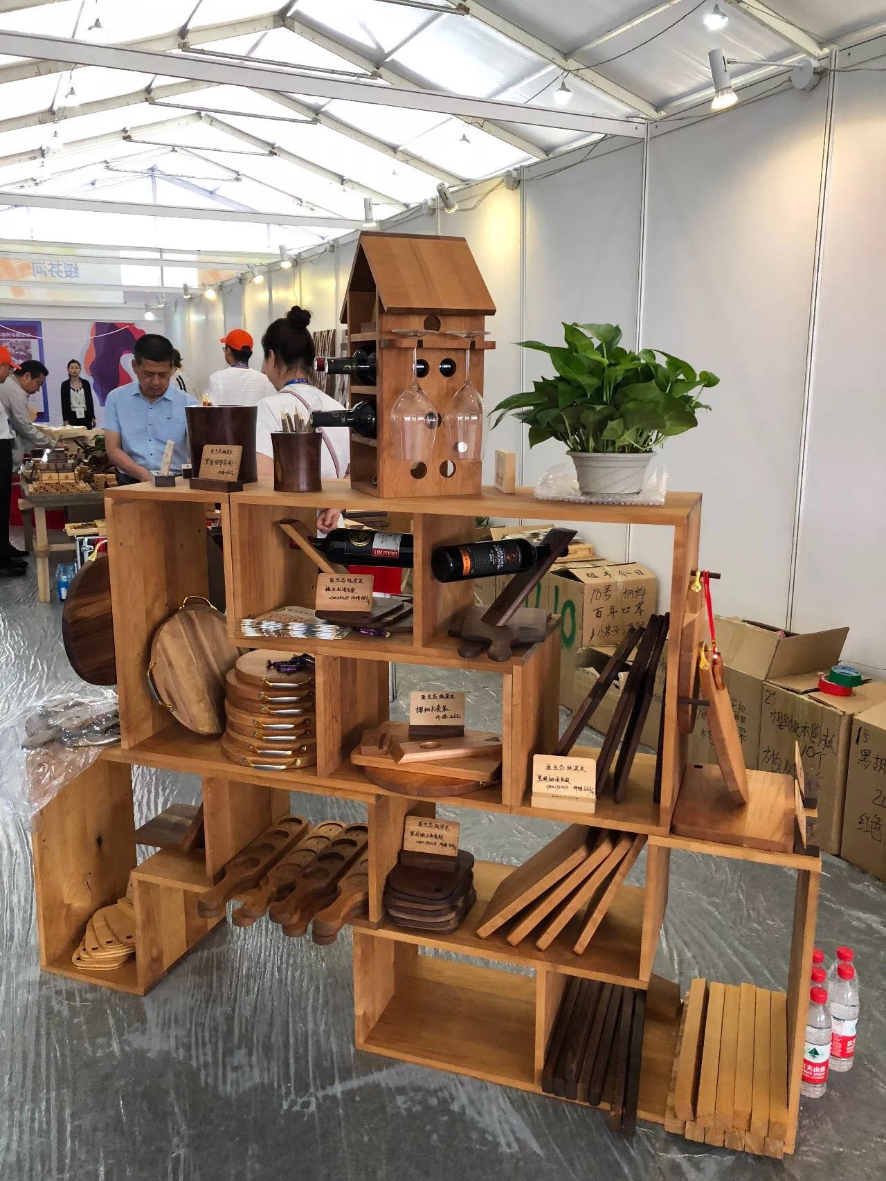 室外篷房内的900平方米特装展馆,展示了绥芬河的木材产业。以“绿色、生态、环保”为主题,造型通透、大气,寓意绥芬河敞开怀抱,欢迎海内外客商投资合作。展馆前半部分为形象展示洽谈区,主要展示绥芬河形象、丰富的木材资源和口岸特点,后半部分为企业宣传展示区。