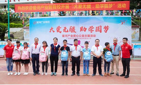 6月13日,星河产业集团联合团市委下属深圳市志愿服务基金会、深圳市鹏益青少年校外体育活动促进中心,在广西省百色市凌云县东和实验小学圆满举办“大爱无疆,助学圆梦”爱心公益活动。凌云县人大常委会主任岑捧花、县教育局局长李代翔等领导及星河产业集团代表出席本次活动。