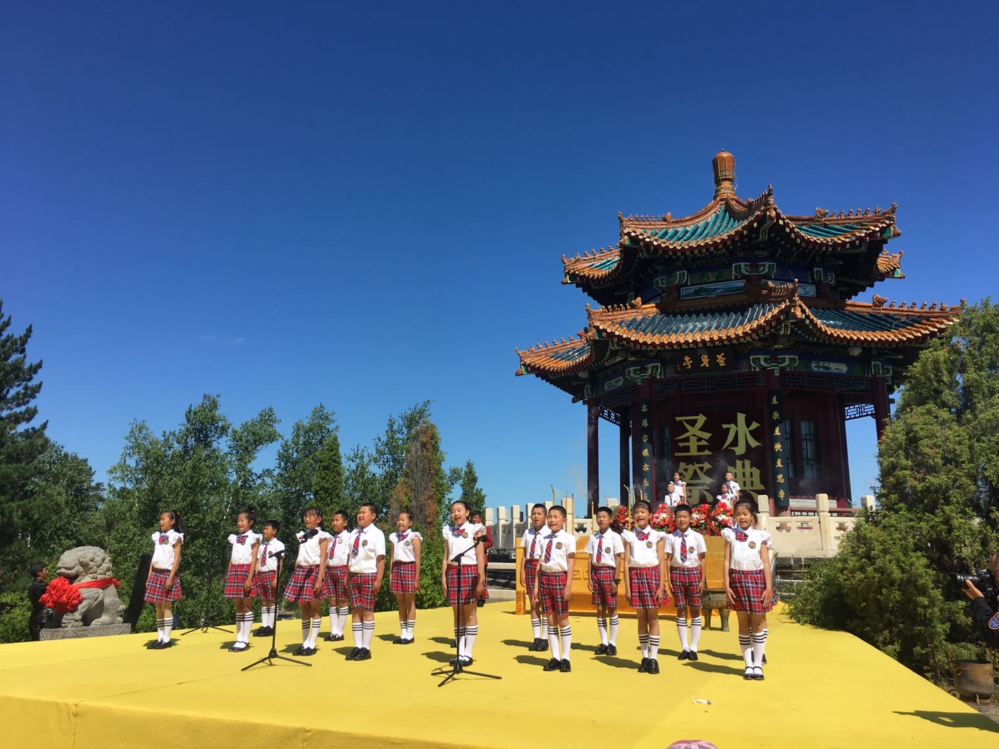 圣水祭台、香案,旌旗列队,仪仗分列两旁,参与领导与各界人士佩戴祭水哈达。在圣水祭典上,先后进行了圣水汇聚、敬献花篮、净手上香、圣水祭拜、高唱颂歌、乐舞敬拜、润泽众生、祈福中华、盛世欢腾九项仪式,其中在盛世欢腾仪式上,代表圣水滋养下五大连池未来希望的百名少年儿童放飞手中的红气球,共同祈福民族昌盛,祖国繁荣。