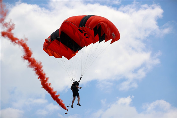 现场跳伞运动员还联手为大家准备了众多花式跳伞活动,让现场的观众大饱眼福。据悉,方特低空极限跳伞大挑战活动是株洲方特“2018过山车狂欢节”的起笔之作,整个狂欢节将一直持续到2018年8月12日,届时还有过山车挑战赛等众多赛事和活动同步开展。