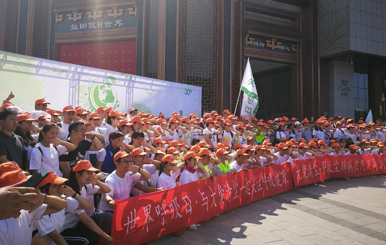 据悉,世界呼吸日是由公益组织大爱清尘联合新浪公益等于2013年6月共同发起的全球性公益活动,旨在促进人类关注呼吸健康、倡导环境保护。此次活动是第六届世界呼吸日活动的重要组成部分,在全国的100个城市,共有15000名志愿者,同时走上街头开展徒步活动,倡导人类关注呼吸健康,加强环境保护。