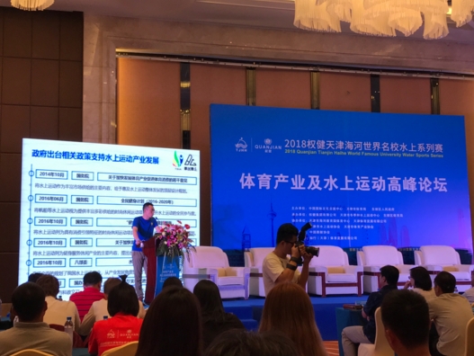 【香港商报网讯】记者邢宝华报道:为进一步推进健身休闲产业供给侧结构性改革,积极响应国家体育总局瞄准新需求、开发新产品、打造新业态、创造新模式和培育新主题的要求, 2018权健天津海河世界名校水上系列赛·体育产业及水上运动高峰论坛于2018年6月25日晚在天津空港白云酒店举行。