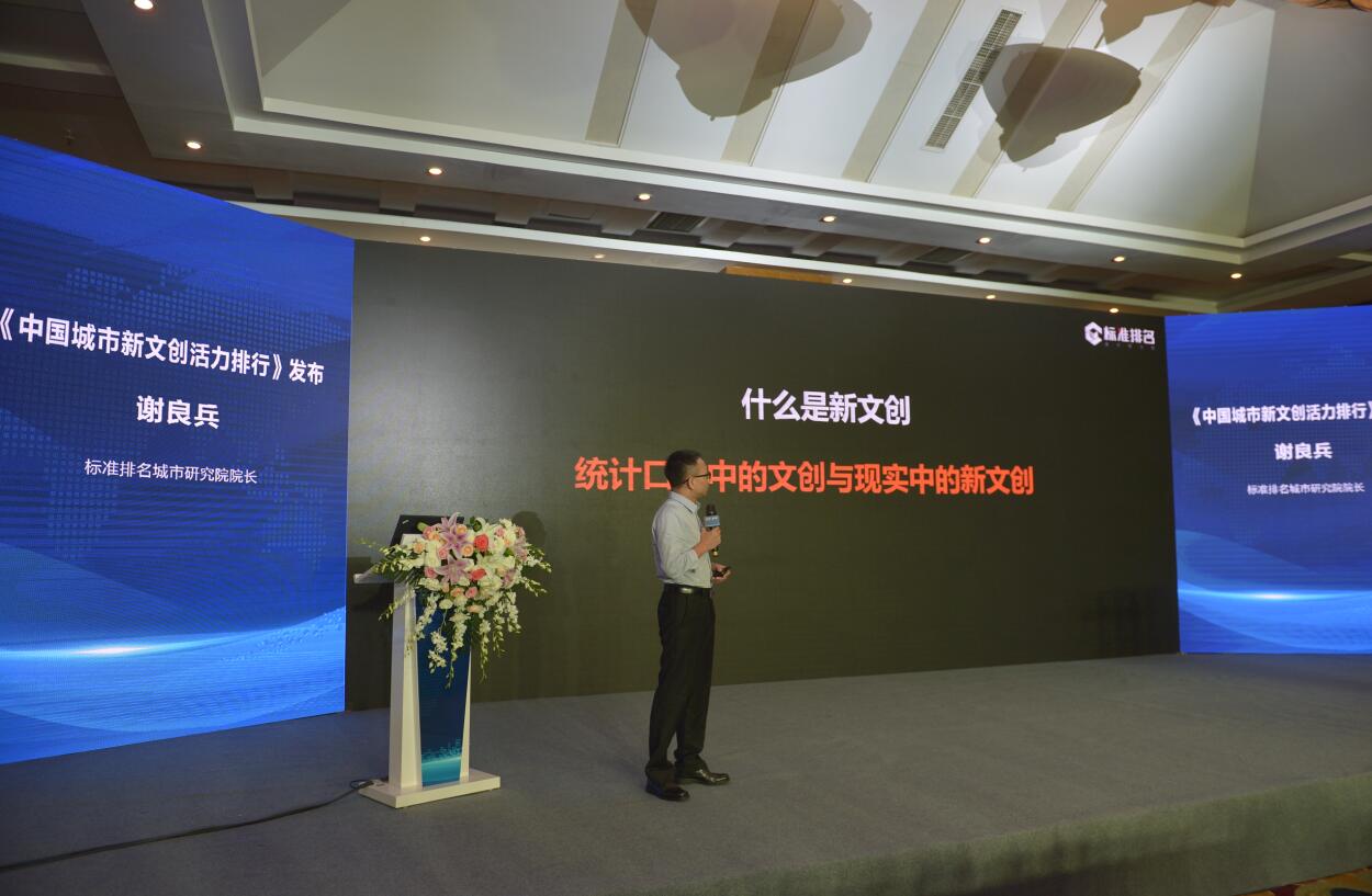 标准排名城市研究院院长谢良兵发布中国城市新文创活力排行榜。