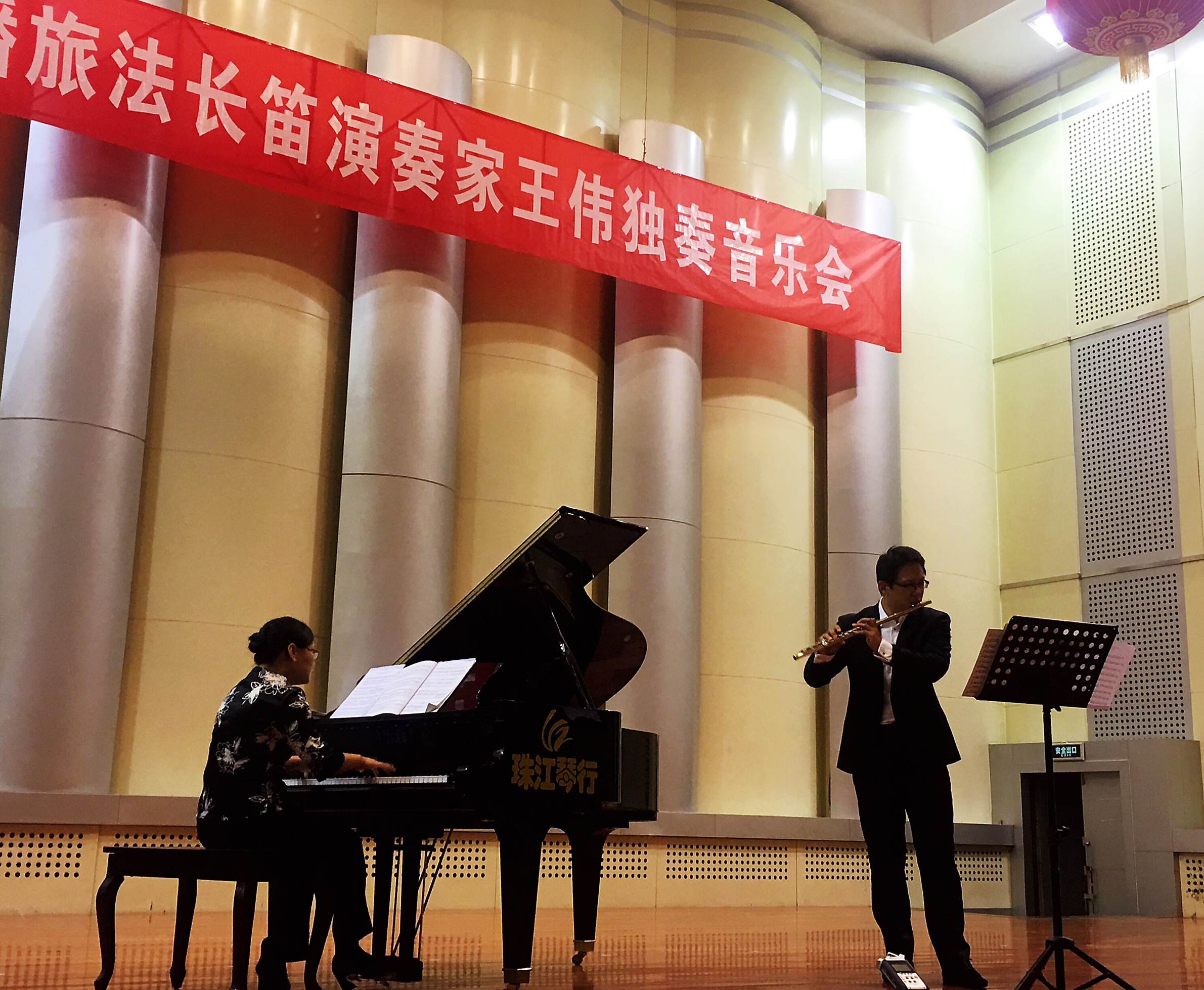 王伟,旅法长笛演奏家,现任法中古典音乐发展交流会主席、巴黎威薇音乐文化中心校长。因其对艺术执着的追求和造诣以及对中法文化交流的贡献,2010年法国巴黎市政府为王伟先生颁发特殊人才居留。音乐会上,他以音色干净纯正,伸张自如,非常具有歌唱性的音乐风格赢得了现场观众的阵阵掌声。听众们在终曲后仍然久久不愿离去,王伟多次返场吹奏一曲曲经典曲目,在炎热仲夏,让观众在美妙的音乐中共同享受了一顿丰盛的音乐文化大餐。