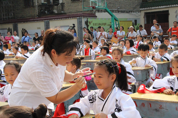 6日,贵州省从江县城关第一小学为该校200余名一年级新生举行庄重的“开笔礼”仪式,让小学新生从小接受中华民族优秀传统文化的启蒙,感知入学是人生中的一件大事,树立勤勉好学的意志。在老师的引导下,新入学的一年级新生们走过“开笔”大道,先后完成了“正衣冠”、“启蒙拜师”、“朱砂启智”、“击鼓鸣志”、“启蒙描红”等五个仪式环节后,在老师的指教下孩子们认认真真开笔书写了自己人生中的第一个“人”字。