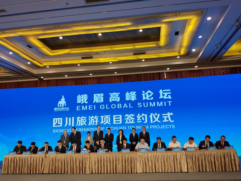 作为第五届四川国际旅游交易博览会“重头戏”之一--峨眉高峰论坛举行了四川旅游项目集中签约仪式,集中签约旅游项目共计18个,签约金额713.7亿元,涉及旅游综合体、旅游主题度假区、旅游民宿、旅游小镇、文创旅游、健康旅游等多个类型。其中,东道主乐山市成果丰硕,共签约项目12个、签约金额517.2亿元,资阳、泸州、眉山、宜宾、攀枝花、南充等6个市签约6个项目、签约金额196.5亿元。