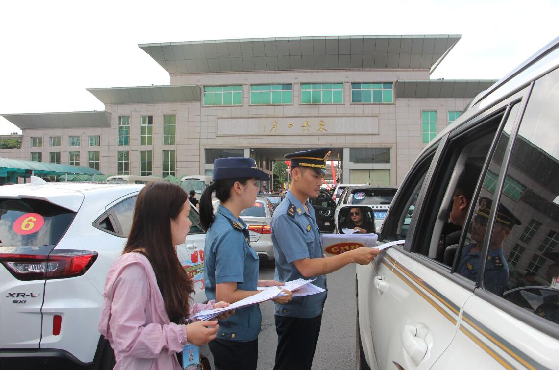 东兴口岸国际道路运输管理处执法人员正在查验中国桂林-越南下龙跨境自驾游车辆。