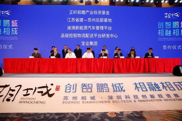 【香港商报网讯】记者杜林、宋璟报道:9月8日,苏州市相城区在深圳举办主题为"创智鹏城·相融相成"的科技创新投资推介会,活动现场签约34个产业、基金和平台载体项目,总投资213.7亿元,分别涉及智能制造、机器人、新能源汽车、医疗健康、科技金融、数字经济等新兴产业。