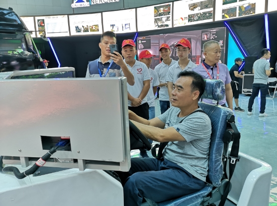 客商在展区体验汽车工业虚拟仿真技术