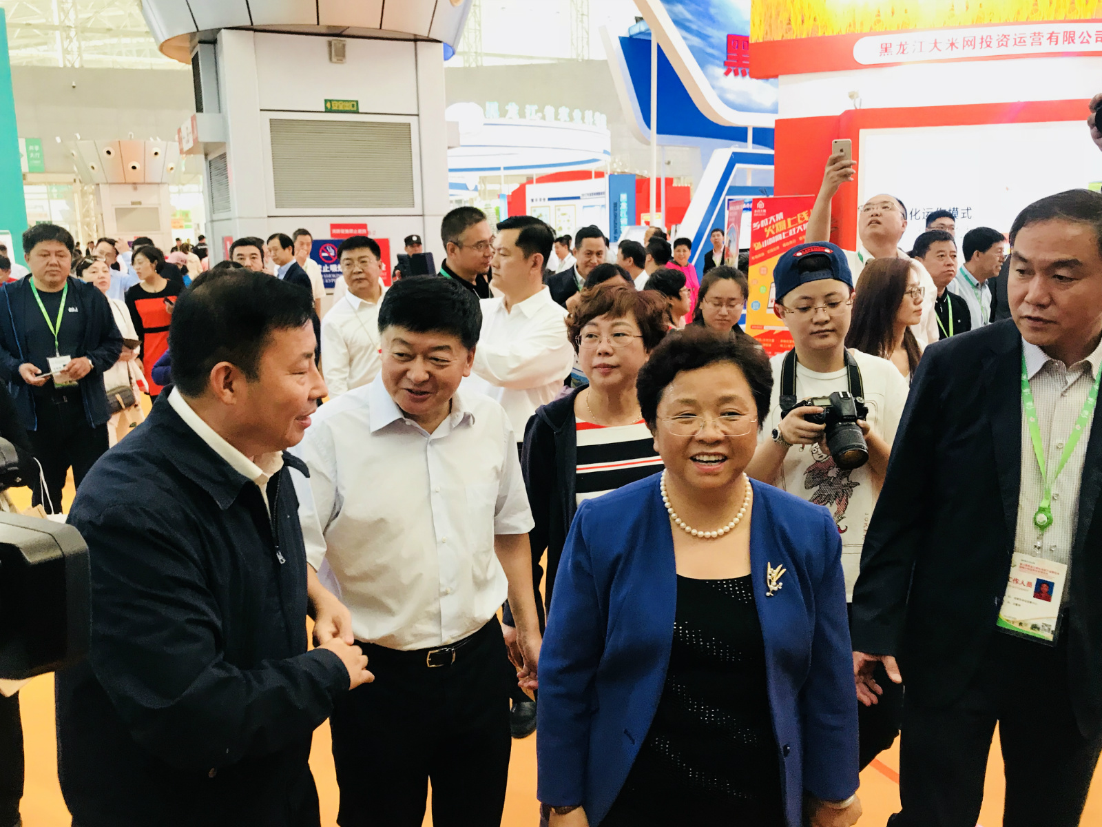 【香港商报网讯】实习记者张晓磊 袁金杉报道: 9月14日,黑龙江省委常委、副省长贾玉梅来到第六届黑龙江绿色食品产业博览会巡视场馆。贾玉梅参观了北大荒集团、森工集团、省农委、和粮农业、优势特色产业扶贫展区、大兴安岭等绿色食品展区并与参展人员热烈交流,询问各企业绿色食品的安全情况、销量、市场营销等情况,鼓励龙江绿色食品打品牌闯市场。