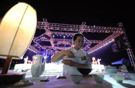 晚會現場,136席茶席圍繞著蓮花狀舞臺依次排開,并且每一席上都將安排一位知名茶藝師為觀眾泡茶。晚會因地制宜,充分利用禪心廣場周邊的八個亭苑與回廊,進行穿插演出,讓觀眾置身于禪音之中,從不同的角度,品茶、賞月、聽曲。