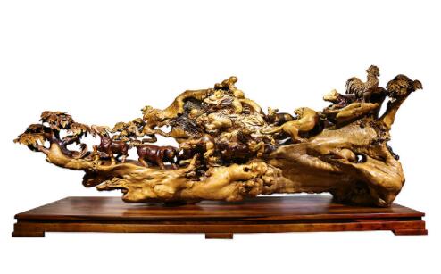 專家推選出無價的國寶級作品11件,一級作品18件, 其中《紅樓夢》、《復蘇》、《人生百態》、《絲綢之路》、《天馬》等以烏木、紅木、珍貴花梨、金絲楠等材料創作而成的作品,遵循巧借天然、三分人工七分天成的根藝創作方法,符合利用枯木斷根變廢為寶化腐朽為神奇的創作宗旨和原則,創作出了天人合一、天人同創的根木藝術作品,被公認為具有非凡的藝術價值、社會價值和經濟價值。