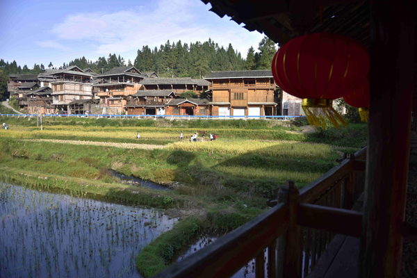 【香港商报网讯】通讯员 吴德军 报道:10月1日,在素有“侗歌窝”的贵州省从江县高增乡小黄村除了演唱侗族大歌外,还开展打谷子、耕牛耙田、捉鱼、捞鱼虾等农耕文化体验活动,吸引众游客前来。
