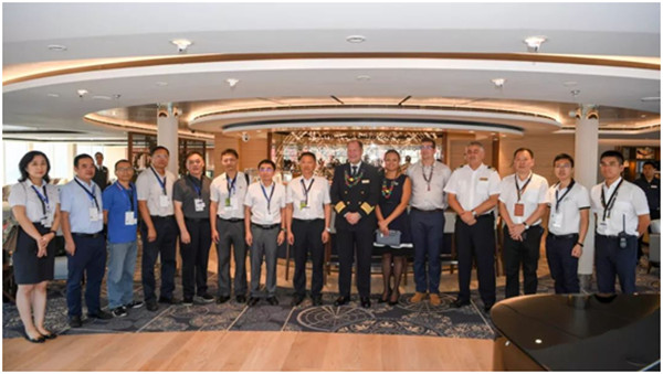 市旅发委、市交通港航局、市口岸办、海南港航控股等相关负责人参加了欢迎仪式并登轮参观。