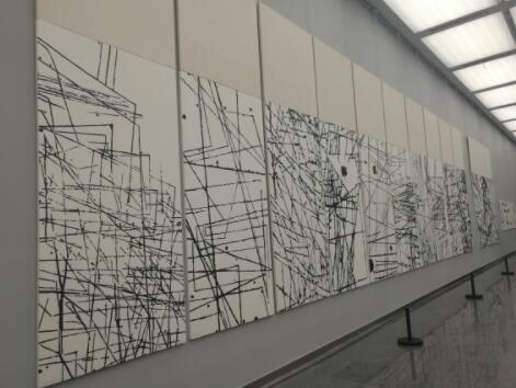 其中,一層展廳著重展出徐仲偶先生的黑白木刻作品。其作品借鑒西方的形式構成關係,在簡潔、單純、抽象等因素上,把傳統書法、篆刻藝術以及與之有異曲同工之效的版畫藝術做了藝術有機的結合。這些作品“從中國出發”,立足於“中國市場”,以中國精神直突入現代,以大塊面的單純色塊、硬挺直線,巨幅的大型壁畫尺寸,從現代城市建築的總體設計角度,把版畫從形式、材料、尺寸、色彩與風格、意韻諸角度,與整體環境做綜合的考慮、協調、設計與繪製。
