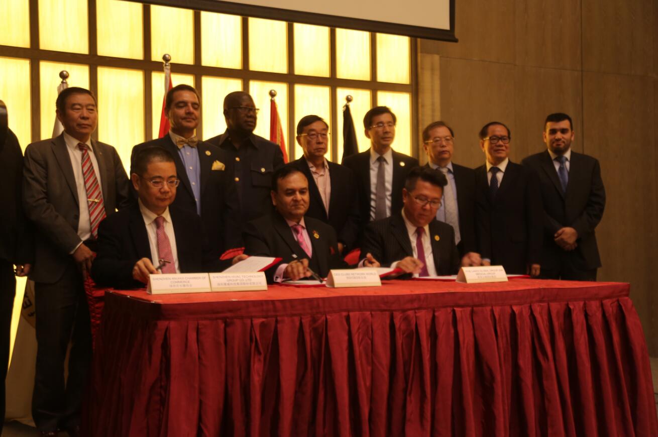 本次活動由美國五湖國際集團和普惠傑康醫療科技有限公司共同承辦,中國世界貿易組織研究會、深圳市安徽商會、深圳市平板行業協會、深圳市跨國企業合規管理研究院、深圳市跨境電子商務行業發展促進會、華大醫療集團、深圳醫學會、亞太日報等機構協辦。中國與全球化智庫(CCG)、北京大學新結構經濟學研究中心、中國(深圳)綜合開發研究院等機構給予活動大力支持。活動以“一帶一路,鏈接世界”為主題,與200餘位中國和來自中東、阿聯酋、歐美、亞非及全世界的全球精英CEO俱樂部會員,包括迪拜皇室成員謝赫·玖瑪·馬克圖姆王子殿下、寰球CEO俱樂部創始人等各國著名公司總裁、尼日利亞能源部長、深圳市公平貿易促進署署長等政府要員及其他重要貴賓一起,提昇區域合作水平,共用發展成果與經驗,探尋“一帶一路”倡議與展覽企業全球化發展的新路徑,深圳市安徽商會不僅在大會上簽訂了協議,還協辦了此次盛會。