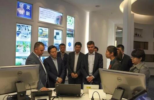 阿哲爾楚科·亞歷山大一行參觀了信息中心、研發中心、植物表型鑒定平臺和生產加工中心。在信息中心,代表團首先在環幕影院觀看了公司的宣傳片,并感受了清晰的3D裸眼觀看效果。在展廳,墾豐種業辦公室主任梁靜詳細地介紹了公司的發展歷程、信息化建設、研發創新情況、生產加工情況。隨后,信息部部長代曉穎為代表團講述了信息化的墾豐, 親身體驗了“辦公環境隨你走,領導同事在身邊”的云辦公系統,并在電商物流環節進行密切交流。在研發中心,代表團依次參觀了墾豐種業具有國際先進水平的實驗室和植物表型鑒定平臺,向科研人員詳細了解各實驗室的設備功能和作用, 并了解研發創新情況、實驗室的功能和作用、玉米種子生產加工全過程。在生產加工中心,代表團詳細地了解了種子生產加工的流程和具備工業4.0標準的現代化全自動加工線,并觀摩了純原裝進口的高端設備,體驗了生產加工的流水操作程序。