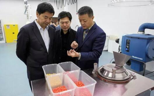 北大荒農墾集團總公司黨委委員、副總經理郭寶松(左一)了解實驗室設備的功能與作用