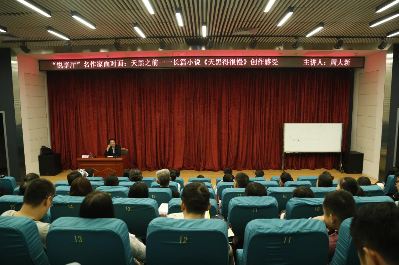 【香港商报網讯】记者王娜报道:10月21日下午,中国著名作家、茅盾文学奖获得者周大新做客宝安区图书馆,这是香港商报与宝安区图书馆联合打造的“悦享厅”名作家面对面系列讲座的第八期,讲座中,周大新分享了自己的长篇小说《天黑的很慢》创作感受,本书描写了中国老龄社会,拓宽人们对衰老以及生命的认识,周大新表示,天黑得很慢,“变老”并不一定是痛苦与沉重的,并呼吁社会以爱之光温暖、照亮老人生命的黄昏。