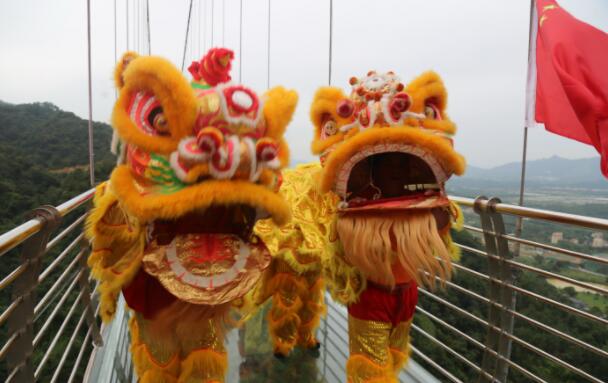 南丹山位于佛山三水南山鎮,因擁有高密度的亞熱帶森林,佛山罕有的高山峽谷,豐富的動植物而出名。南丹山的玻璃橋建在其中的兩座主峰上,橫跨兩座主峰。南丹山“紫云飛渡”玻璃懸索吊橋是最新一代6D玻璃吊橋,橋長度379米,橋面距離峽谷的高度202米,橋面寬度4米,采用聲、光、魔電一體營造出6D效果。玻璃橋于今年8月初,通過了國家安監局授權的安全評估機構驗收,參數合格符合開業條件。南丹山玻璃橋建在山上,建在大峽谷上,山陡谷深,工程難度非常大,總投資3000多萬元,歷時一年才建成。站在山下往山上看,可以看到玻璃橋像橫跨在兩座山峰上,在若隱若現的云霧中如同仙橋,也像一輪彩虹。剛好下過一場小雨,玻璃橋被白茫茫的云海籠罩著,而如煙如雪的白云在千峰萬壑之間,在黛青色的山巒映襯下,波瀾起伏,浩瀚似海,宏偉壯觀。走到橋上去,可以看到澗谷縱橫峽谷連,流銀掛玉涌飛泉,紫氣團山云鶴牽。橋四周更是懸崖峭壁、飛瀑擎天。