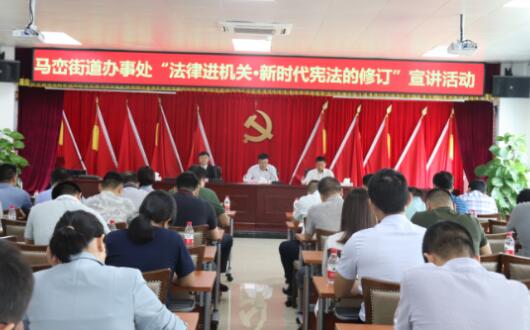 馬巒街道黨工委書記孟曉賢要求全體干部職工提高政治站位,把學習宣傳好憲法作為一項重大政治任務,以高標準大力度,推動馬巒街道在憲法學習中走在前列、作出示範。