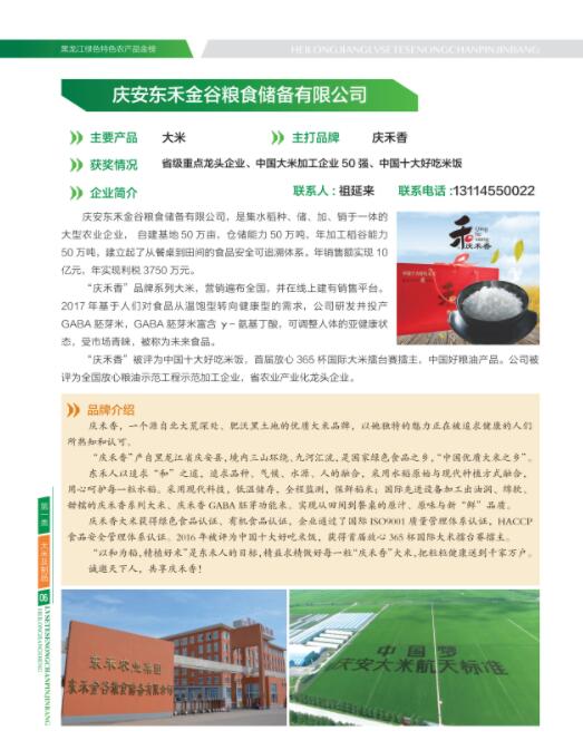 《黑龍江綠色特色農產品金榜》畫冊內頁——慶安東禾金谷糧食儲備有限公司