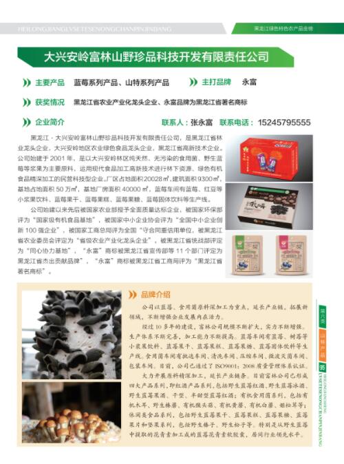 《黑龍江綠色特色農產品金榜》畫冊內頁——大興安嶺富林山野珍品科技開發有限責任公司