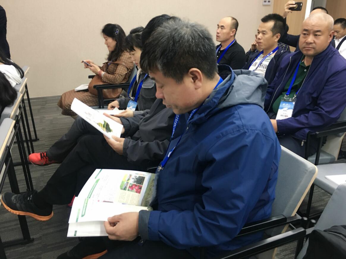 會議現場,參展商認真閱讀《黑龍江省綠色特色農產品金榜》畫冊