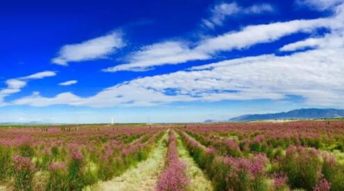 阿勒泰戈寶麻花海景區位於全球距海岸最遠的陸地——新疆阿勒泰阿拉哈克東戈壁是目前世界唯一面積最大的戈寶麻人工種植保護區