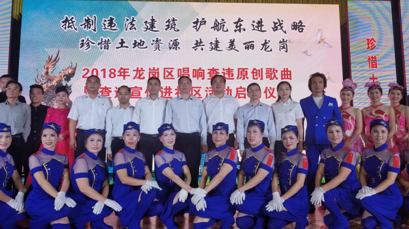 此次活动以“抵制违法建筑,护航东进战略,珍惜土地资源,共建美丽龙岗”为主题,组织了查违原创节目表演,以市民喜闻乐见的小品、快板、歌曲、舞蹈等艺术形式,讴歌奋战在查违一线的执法队员,指出违建的危害与后果,宣传龙岗查违政策法规以及查违举措成效。并将由龙岗区规划土地监察局余世猛局长作词的查违原创歌曲《违法建筑不要搞》和国土卫士之歌《守候美丽家园》在活动现场传唱。