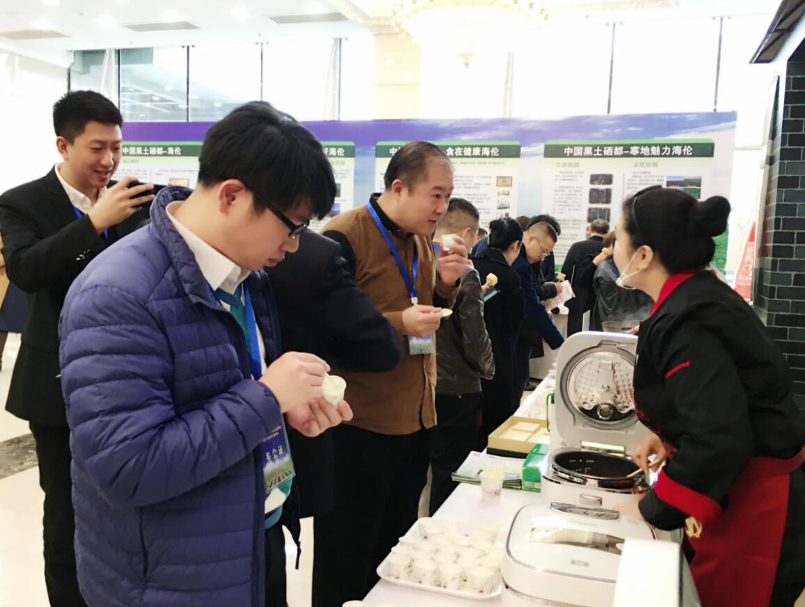 在現場還看到,海倫市的20家富硒農產品加工企業集中展示了大米、大豆、雜糧、鮮食玉米、馬鈴薯、蒲公英茶、山產品和乾菜、富鍶礦泉水、酒類等九大類近100個品種的富硒產品。
