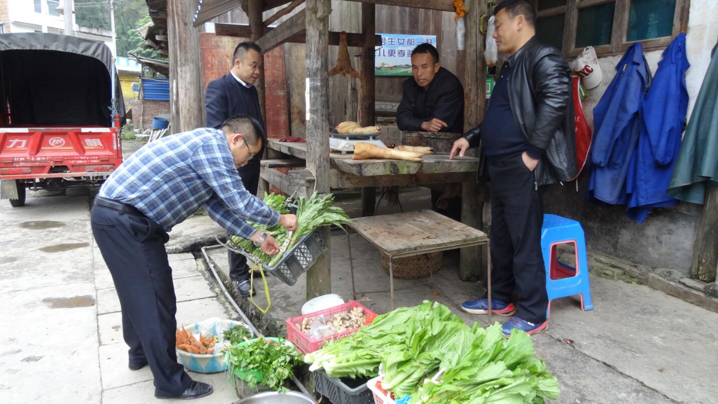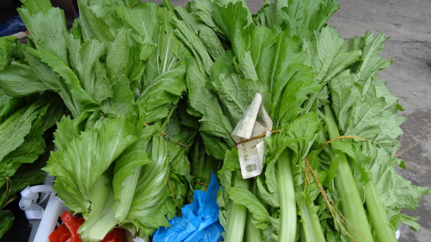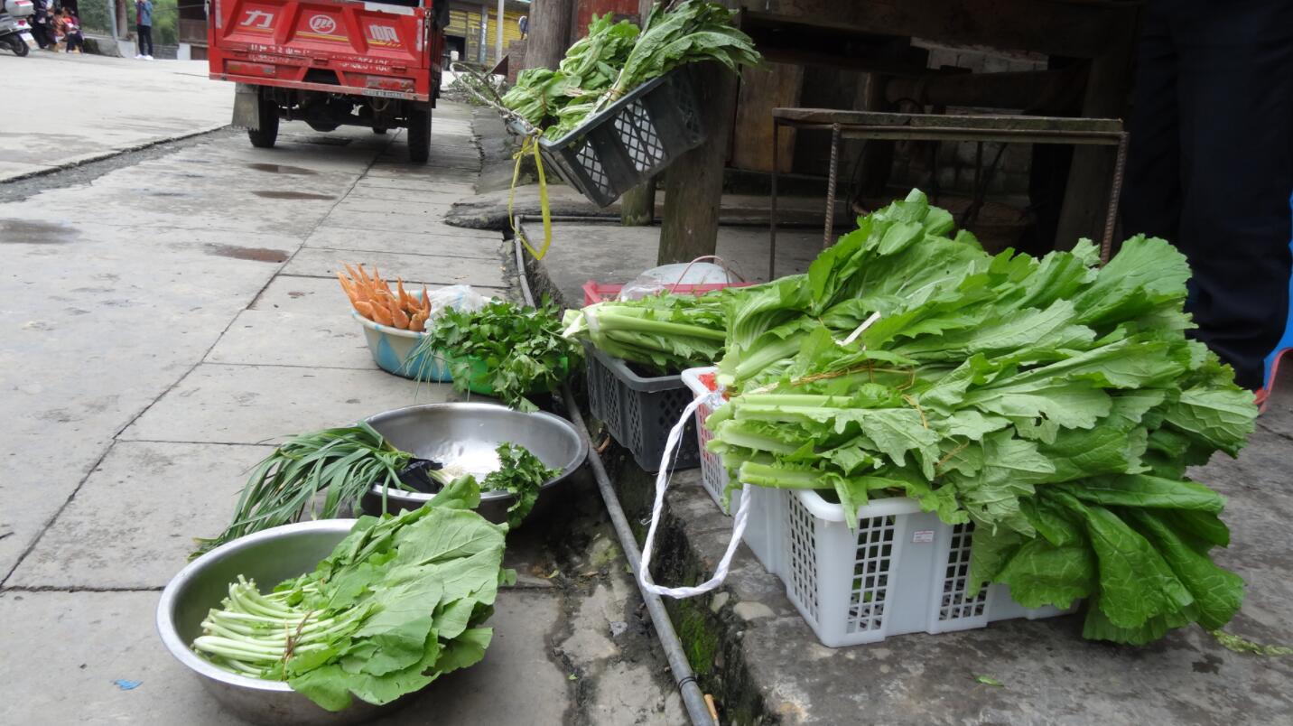 11月15日,在貴州省從江縣谷坪鄉穀洞村“無人菜攤”上,擺放在街邊菜攤上的青菜每把一元錢。(梁雨 攝)