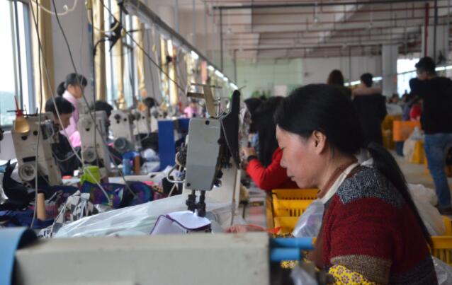 西江扶貧車間坐落在西江鎮原果園場,是瑞金、于都、會昌三縣通渠之地,項目分2期建設,一期占地約50畝,2017年實施并投入使用一期。記者來到扶貧車間,干凈整潔,映入眼簾的是6棟標準廠房、各1棟辦公樓和宿舍樓。車間內“學會一種技能,帶富一個家庭”的標語十分醒目。