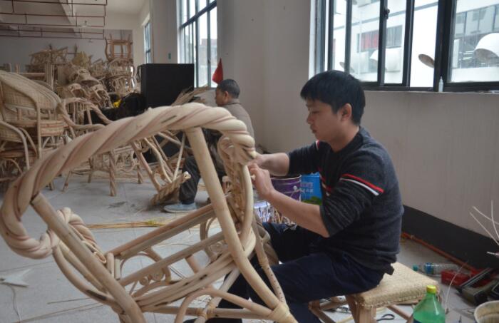 扶貧車間內的貧困戶在編織工藝品