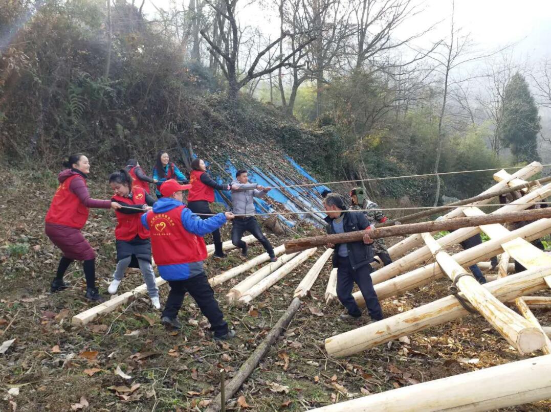 平武縣委宣傳部扶貧“娘子軍”幫助貧困戶建房屋【王興莉 攝】