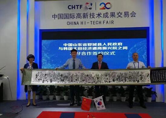 会上,郓城和中材建筑科技有限公司签署了投资协议。会后,郓城县委常委、统战部部长苏怀光接受了媒体专访。高交会期间,郓城县委常委、统战部部长苏怀光会见了韩国大田特区前副市长、韩国大田经济通商振兴院院长李畅九,韩国高科技项目孵化中心首席代表、中韩尖端科技产业交流协会会长等人,并代表郓城县人民政府和韩国大田经济通商振兴院签署友好合作协议。
