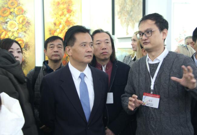 【香港商報網訊】11月24日上午,首屆東北亞文化藝術博覽會在哈爾濱國際會展中心啟幕,開幕式後,哈爾濱市委常委、宣傳部部長焦遠超,深圳市文化體制改革和發展辦公室主任劉文斌等領導巡視展館。焦遠超、劉文斌等參觀了文化產業綜合展區、數字文化展區、藝術精品展區等三大展區,並與參展人員進行交流,詢問區域特色文化發展、藝術創作、市場行銷等情況。