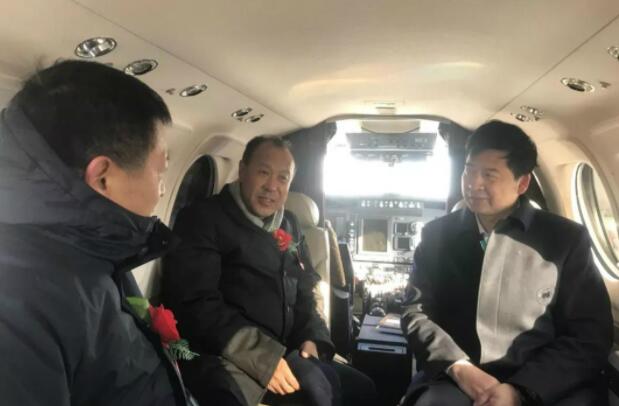 綏化市委副書記、市長張子林,北大荒集團(農墾總局)黨委委員、副總經理郭寶松,肇東市委書記張偉志參觀空中國王350飛機