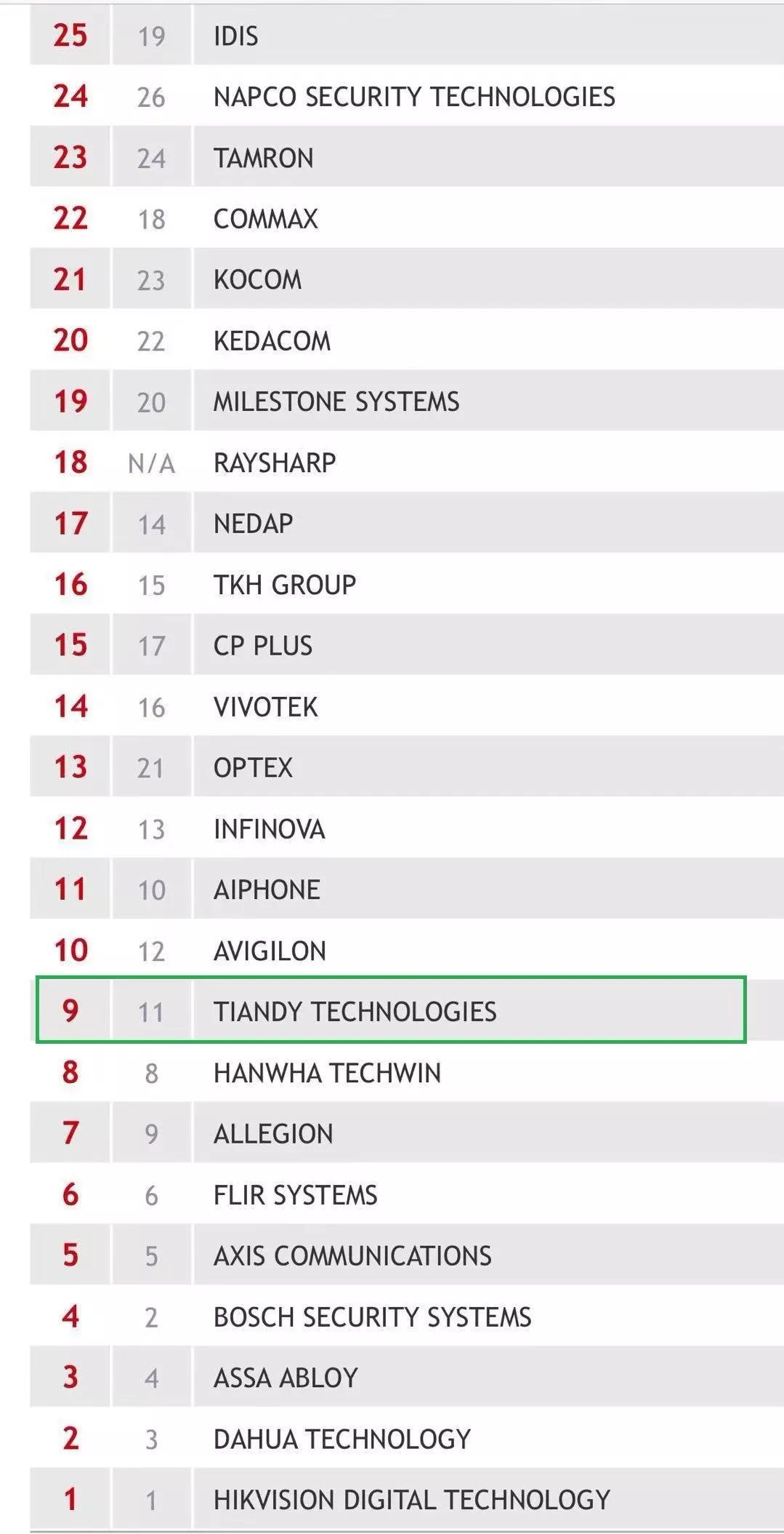 【香港商報網訊】記者 邢寶華 報導:法蘭克福a&s“全球安防50強”排名暨調查報告日前正式出爐。這項排名針對全球範圍內具有強大影響力的公司進行調研分析,就其2017年安防產品銷售收入進行排名。天津高新區企業天地偉業在本次排名中再獲進階,繼續入選全球安防50強,位列第九。