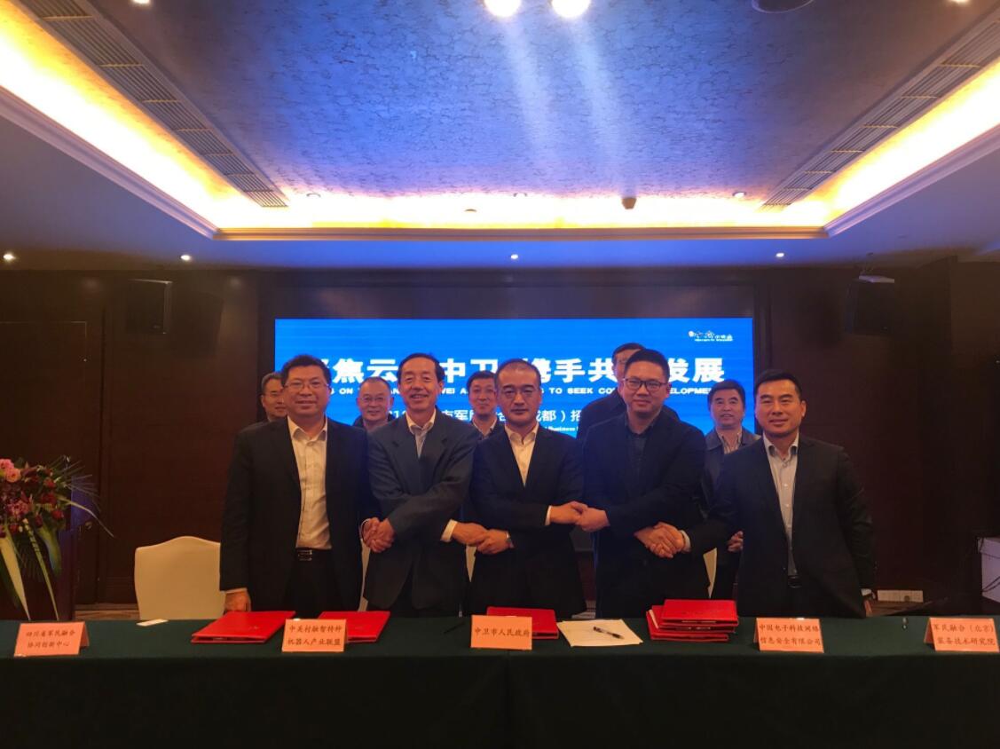 當天,中衛市分別與四川省軍民融合協同創新中心、威特龍消防安全集團股份公司、中國電子科技集團公司第三十研究所、四川眾望安全環保技術諮詢有限公司、中關村融智特機器人產業聯盟、軍民融合(北京)裝備技術研究院、四川眾望雲科技有限公司、樂為科技有限公司、上海太敬集團機器人有限公司、陝西賽威信息工程監理評測有限公司等簽訂戰略合作框架協議。