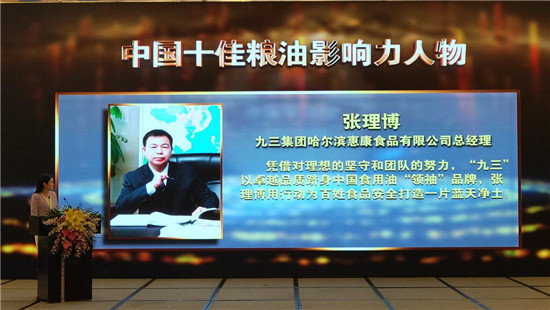 【香港商報網訊】12月1日,2018中國糧油財富論壇暨第八屆中國糧油榜頒獎典禮在北京盛大開幕,九三集團憑借對國家和人民高度負責的使命擔當和快速發展的業績表現再獲“中國十佳糧油集團特別獎”,九三集團副總裁張理博憑借對食品安全的高度重視和有效管控以及創新經營舉措榮獲“中國十佳糧油影響力人物”稱號。