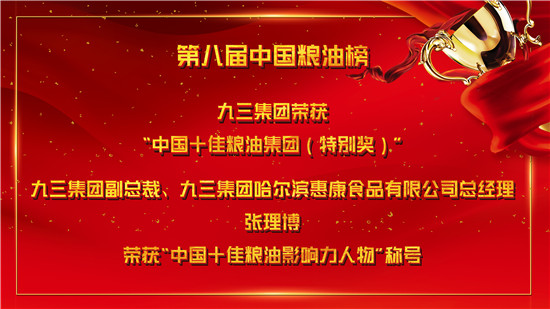 九三集團獲得的榮譽是對其33年堅守“為社會提供健康食品”企業宗旨的充分肯定。未來,九三集團將以習近平總書記“中國糧食,中國飯碗”的重要講話精神為指引,努力讓中國人的飯碗里裝滿糧食,更要裝滿最安全、最優質的中國糧食和中國食品。(孫尚 張曉磊)