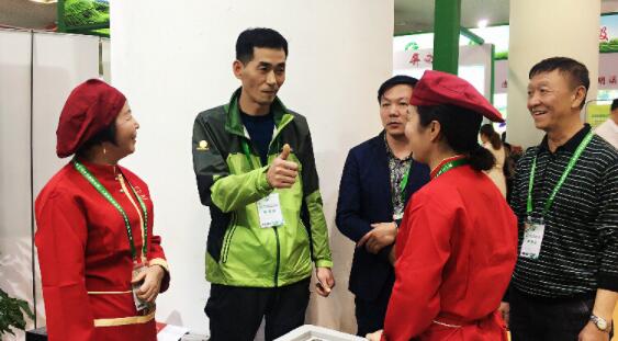 黑龍江省農村農業廳副廳長李世潤(右一)、黑龍江綠色食品發展中心主任王蘊琦(右二)了解凍豆腐產品特點