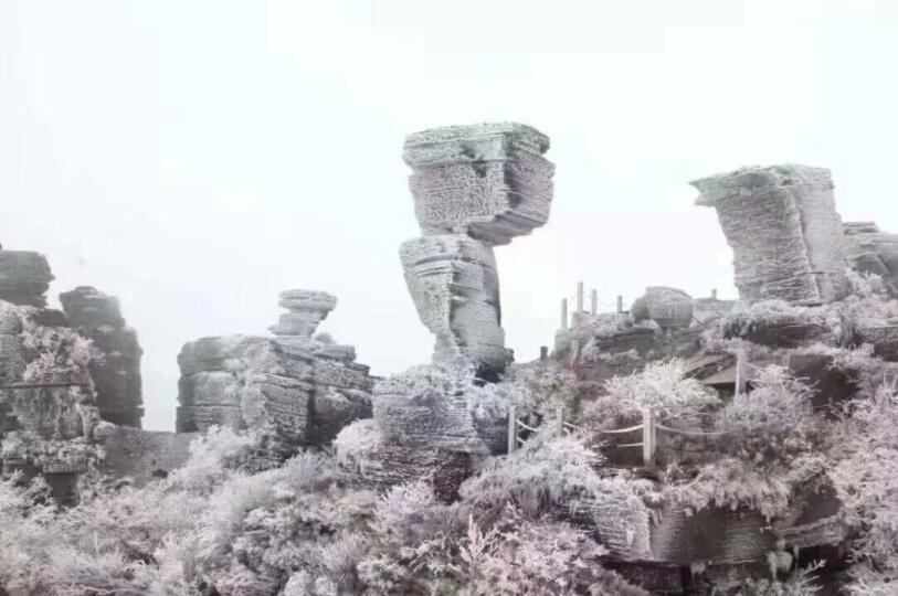 梵淨山景區內蘑菇石被雪籠罩