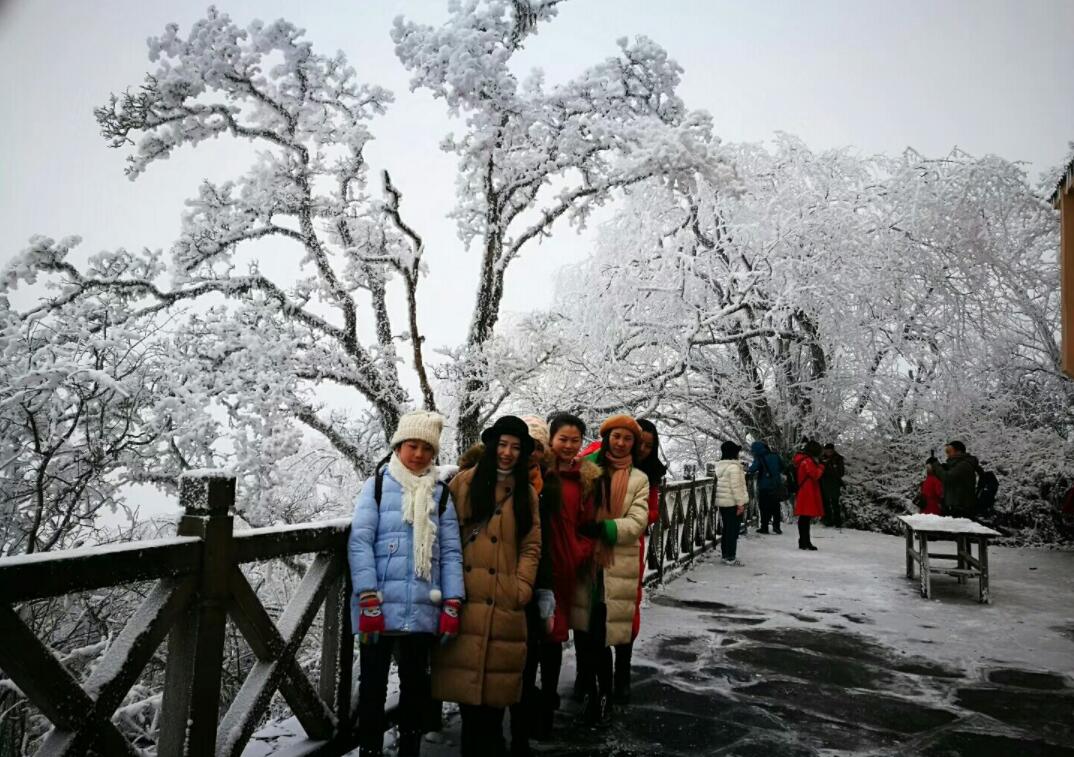 “冬季裡纖塵不染的梵淨山的雪景簡直是太漂亮了,山頂上全是白皚皚的雪和冰,飛雪與流雲齊舞,山巒與長天一色,道不盡暑去冬來,葉落枝頭白,很難得一見。”遊客李女士說。(黃慶松 何雄周)