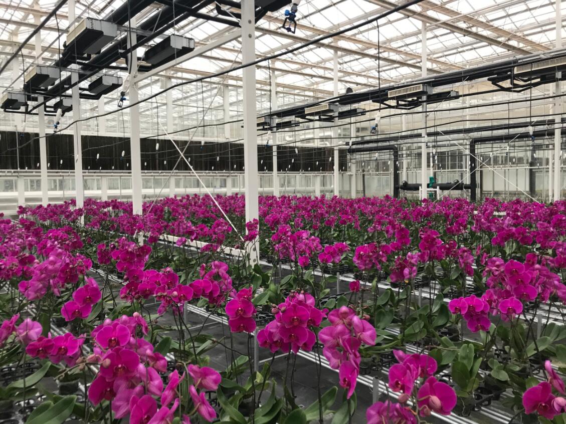 外媒走訪桂林洋國家熱帶農業公園,圖為農業夢工廠裡的花卉區
