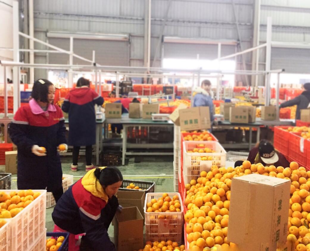 物流園的工人正挑揀、裝箱秀山柑桔發往全國各地