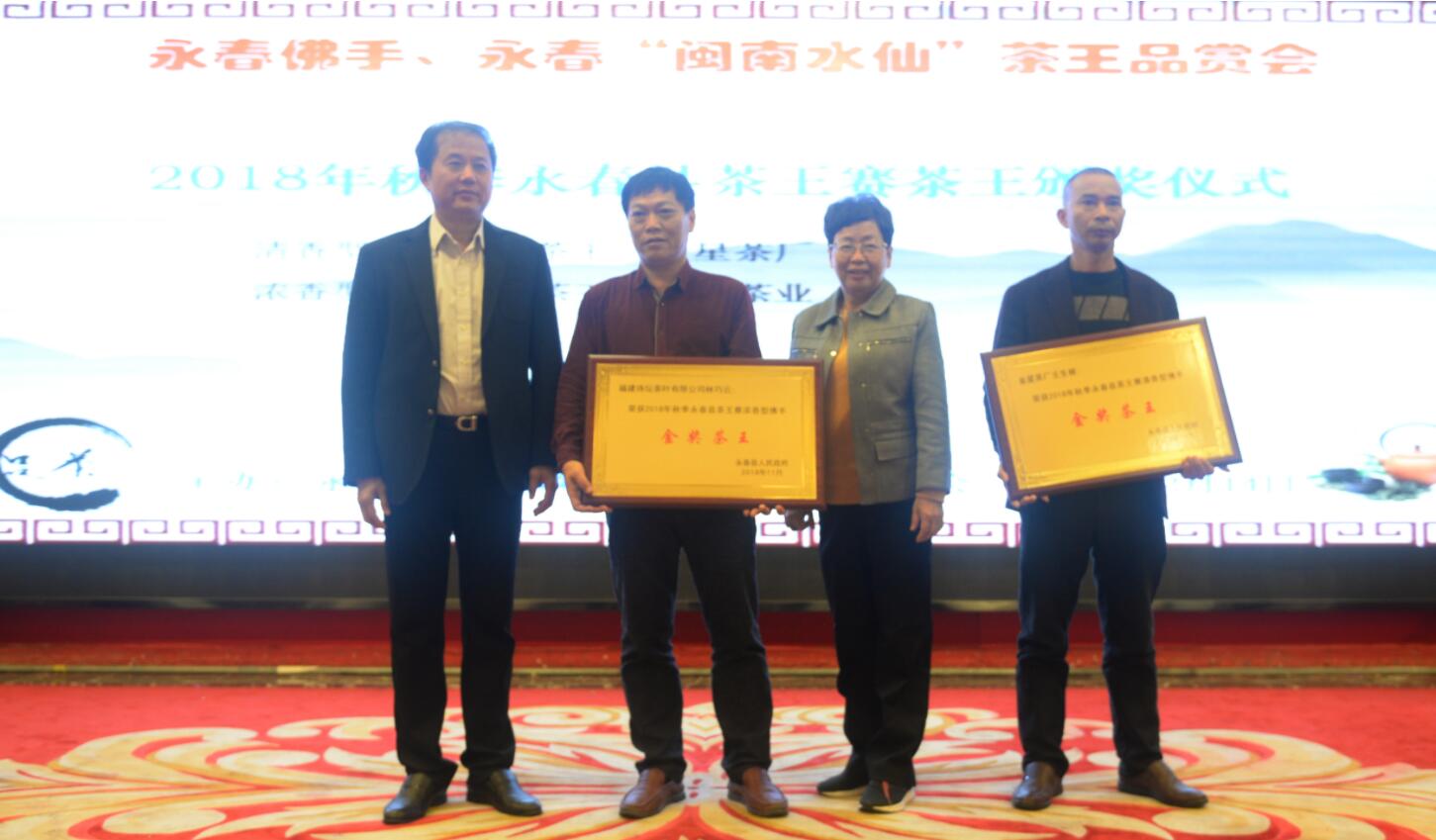 泉州市人大常委會原主任傅圓圓,永春縣人大常委會主任林金電分別為今年清香型、濃香型兩位永春佛手茶王代表頒獎