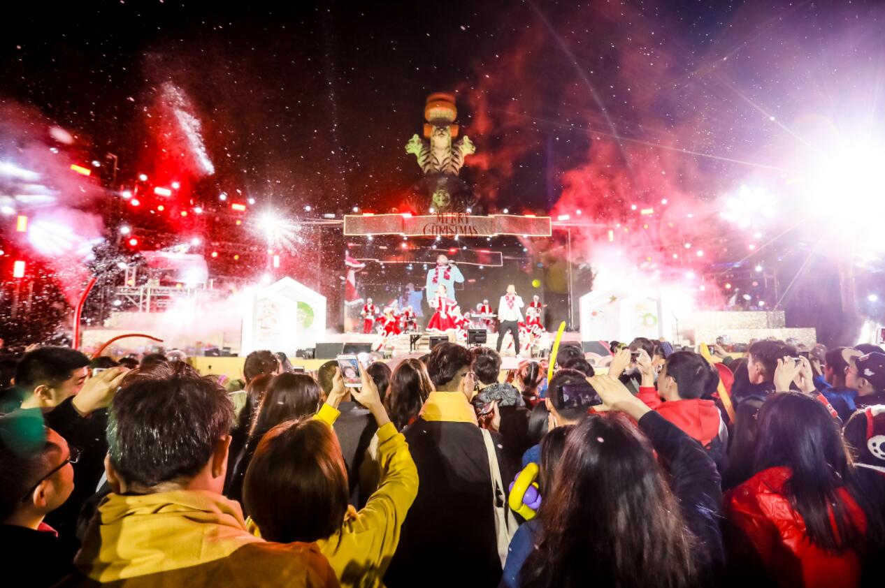 今年长隆欢乐世界打造“金”夜有爱欢乐圣诞节,由12月14日至2019年1月1日共19天,开启圣诞夜场(营业时间为15:00-21:00),“金”彩雪花大派对“金纷盛宴”每晚压轴上演,加上遍布全园的梦幻彩灯以及会说话能互动的趣味灯饰、圣诞雪花大巡游、圣诞美食商品集市等,一站满足大小游客吃喝玩乐、辞旧迎新的“金”色愿景。